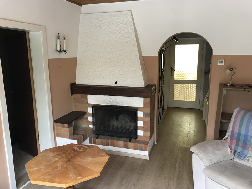 Im Erdgeschoss liegen Wohnzimmer, Küche, Bad und Kaminzimmer sowie eine Eingangsveranda, im Dachgeschoss zwei Schlafzimmer und ein WC. Wohnfläche ca. 98 qm. Das Haus hat einen Teilkeller mit Wirtschaftsraum und Heizungsraum mit der Öl-Zentralheizung inklusive Warmwasser. Zum großen Garten hin schließt sich eine überdachte Terrasse an. Ein separates massives Gebäude wurde als geräumige Doppelgarage gebaut, sie ist zur Zeit teilweise als Kfz-Werkstatt (beheizbar, 63 qm) ausgestattet.